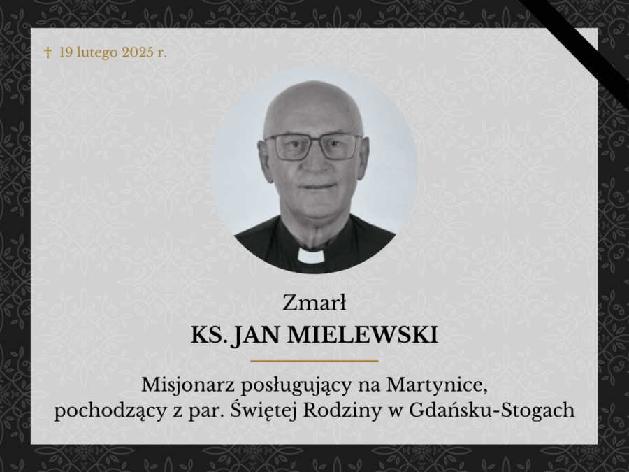 19 lutego br. na Martynice, po ciężkiej chorobie, odszedł ks. Jan Mielewski. Urodzony 28 marca 1959 roku, przyjął święcenia kapłańskie 16 lipca 1983 roku. Kapłan pochowany został w środę, 25 lutego na tej karaibskiej wyspie, gdzie przez 25 lat posługiwał jako misjonarz. Wcześniej pracował także w Kamerunie.