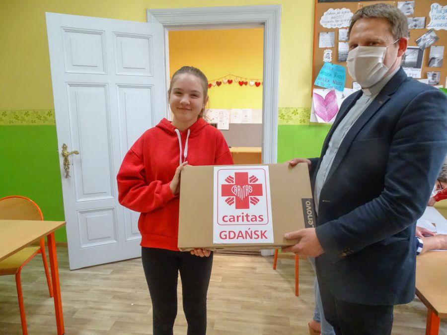 W Gdańsku 5 zestawów komputerowych trafiło już do dzieci ze świetlic Caritas. Urządzenia umożliwią im udział w zdalnej nauce.
