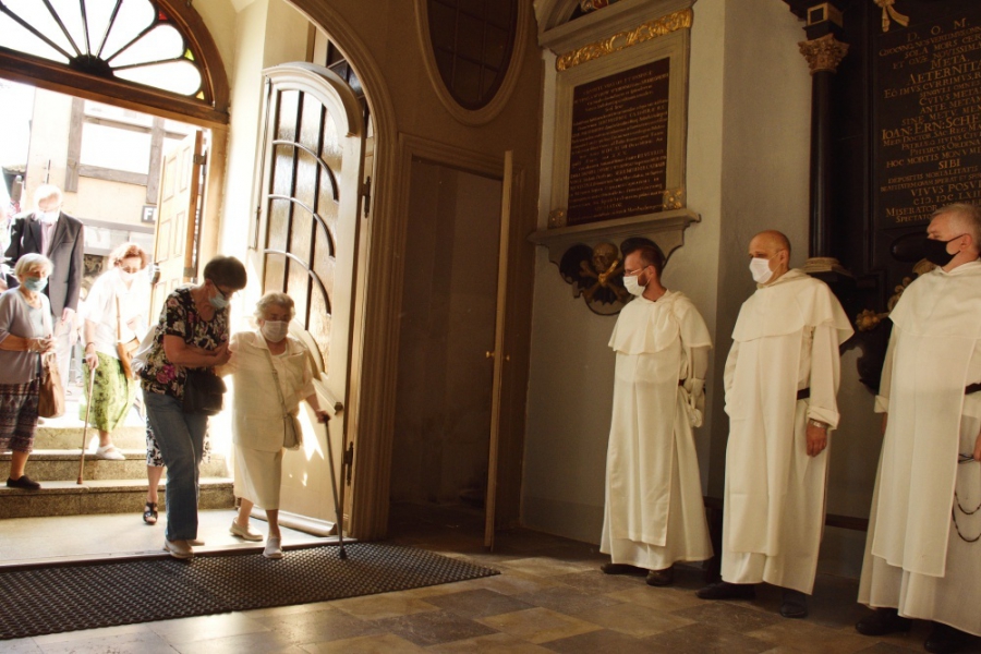Błogosławieństwo relikwiami założyciela zakonu na zakończenie Mszy św. Jak od wieków, 8 sierpnia miał miejsce tradycyjny dominikański odpust w Gdańsku. Po 643 dniach zakonnicy i parafianie wrócili na liturgię do otwartej po remoncie bazyliki.