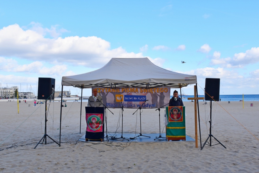 Kolejny raz na gdyńskiej plaży miejskiej odbyło się czytanie Pisma Świętego. Słowu Bożemu na Bulwarze Nadmorskim przysłuchiwali się w sobotę 25 września m.in. uczestnicy gdyńskiego Festiwalu Polskich Filmów Fabularnych.