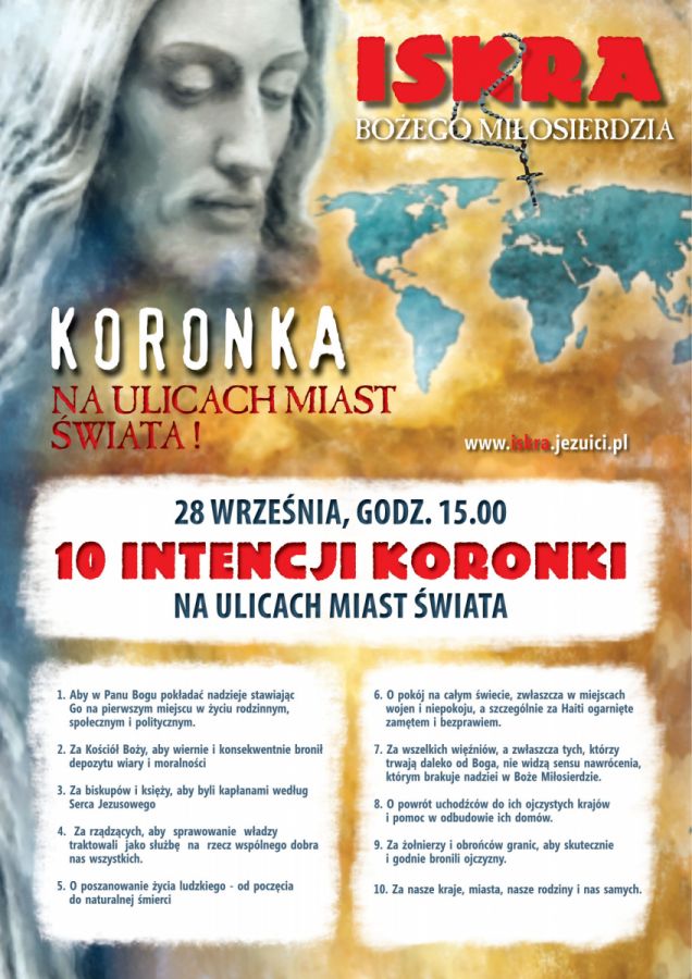 Zespół Iskra Bożego Miłosierdzia z Łodzi oraz Sanktuarium Miłosierdzia Bożego z Białegostoku, w rocznicę beatyfikacji bł. Michała Sopoćki, spowiednika św. Faustyny, zapraszają do wspólnej modlitwy wszystkich, by o tej samej godzinie, tego samego dnia, stanąć na ulicy, na więziennym dziedzińcu, przed swoim domem, biurem, fabryką, szkołą, kościołem i połączyć się z Jezusem konającym na krzyżu, a następnie odmówić wraz z nami koronkę do Bożego Miłosierdzia.