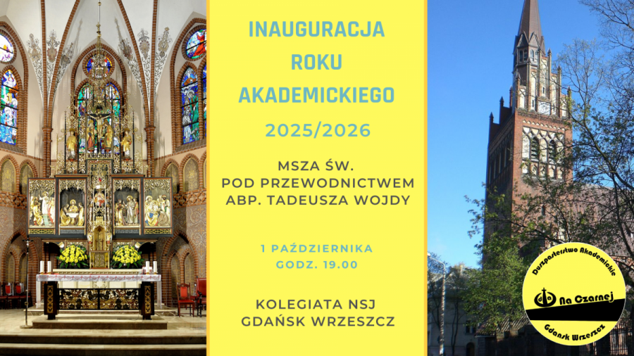 Zapraszamy władze uczelni, pracowników akademickich, studentów, członków wspólnot akademickich, duszpasterzy akademickich na uroczystą Mszę św. inaugurującą nowy rok akademicki. Celebracji przewodniczyć będzie abp Tadeusz Wojda.