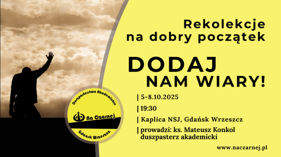 Nowy rok akademicki już tuż, tuż! Warto dobrze go zacząć! Zapraszamy studentów, osoby wieku "okołostudenckim", pracowników uczelni wyższych oraz wszystkich, którym bliska jest akademicka atmosfera, na Rekolekcje na dobry początek.
