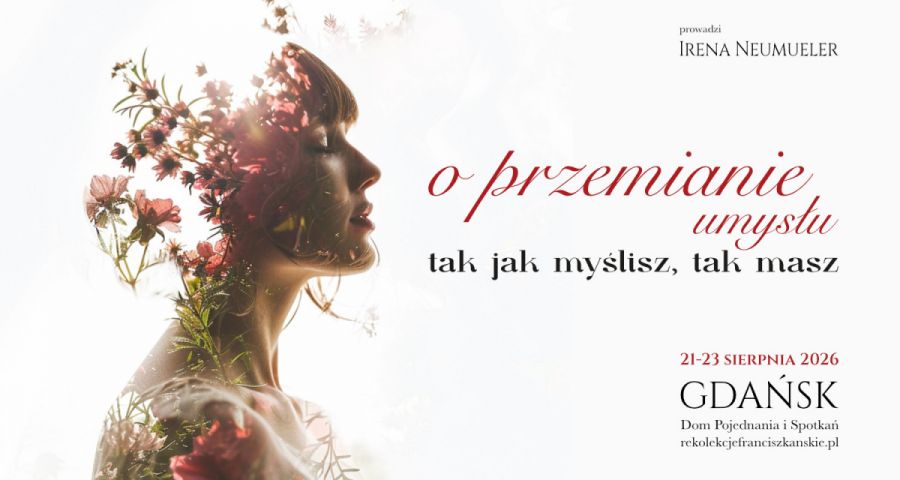 Zapraszamy na weekendowe rekolekcje dla kobiet i mężczyzn, poświęcone przemianie umysłu i odkrywaniu, jak nasze myśli wpływają na całe życie. Będziemy szukać odpowiedzi na pytanie, jak zmienić sposób myślenia, by patrzeć na siebie, świat, Boga w prawdzie i z nadzieją.